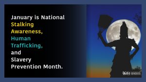 January is National Stalking Awareness, Human Trafficking, and Slavery Prevention Month